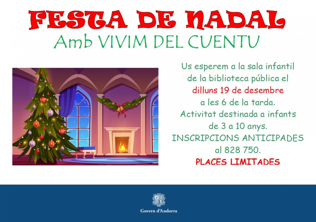 Festa de Nadal amb Vivim del Cuentu, per a infants de 3 a 10 anys.