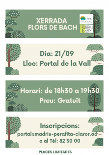 21/09: Xerrada per a adults, en què aprendrem els orígens de les Flors de Bach, els beneficis de la teràpia floral i el famós 'Rescue Remedy'
