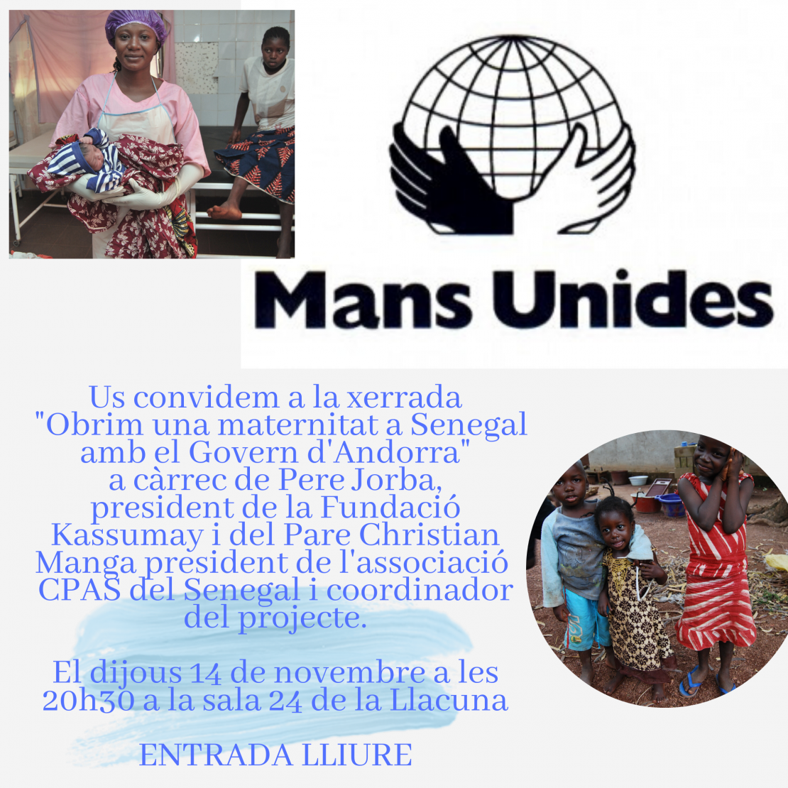 Xerrada 'Obrim una maternitat a Senegal amb el Govern d'Andorra', a càrrec de Pere Jorba, president de la Fundació Kassumay, i de Pare Christian Manga, president de l'associació CPAS del Senegal i coordinador del projecte.
