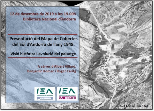 Presentació del Mapa de cobertes del sòl d’Andorra de l’any 1948. S’explicarà el context històric que representa el mapa. Es mostraran els resultats i l’evolució del paisatge a partir dels mapes de cobertes del sòl d’altres anys (1972, 1995 i 2012).