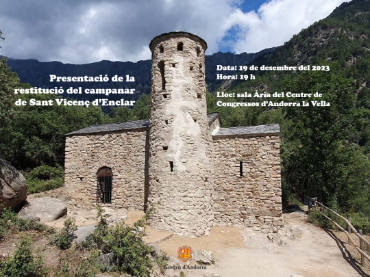 Presentació dels treballs de restitució del campanar de Sant Vicenç d’Enclar, a càrrec dels arquitectes Carles Brull i Andreu Canut, que formen part de l'equip que ha redactat el projecte i conduït l’obra, format per Letellier Architectes, Brull i Alfonso Arquitectura i Patrimoni, Altura Arquitectes.