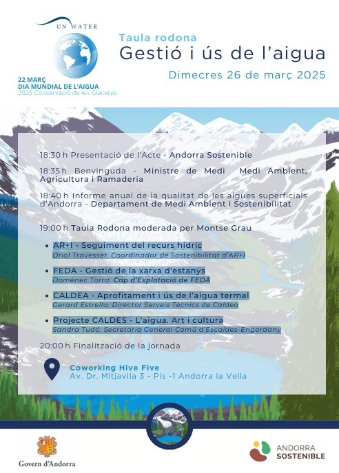 Vols entendre millor com es gestiona un dels recursos més essencials del nostre planeta? Andorra Sostenible et convida a una taula rodona dinàmica i enriquidora amb experts i professionals del sector de l’aigua del país.