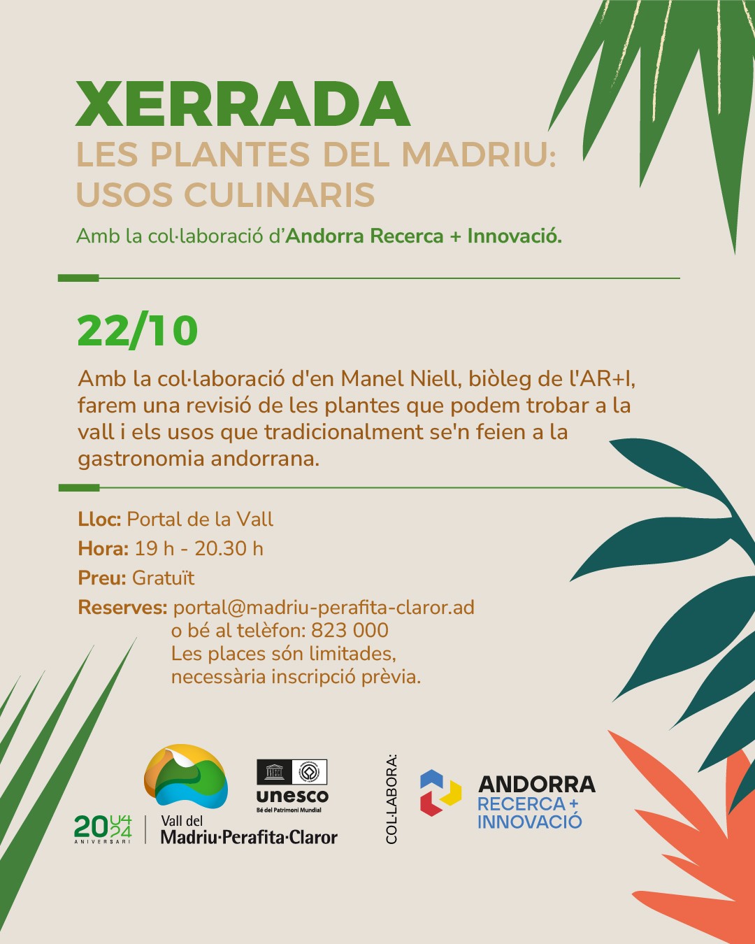 Serà necessària inscripció prèvia: https://www.madriu-perafita-claror.ad/agenda-dactivitats/ o al telèfon: +376 823 000