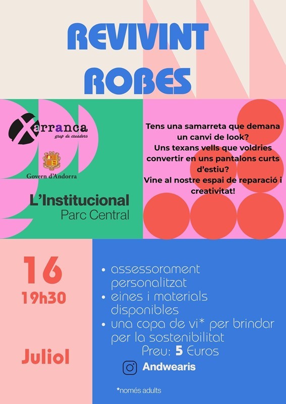 Revivint Robes, un taller per reparar, transformar i donar nova vida a la teva roba antiga. Tens una samarreta que et demana un canvi de look? Uns texans que vols convertir en uns pantalons curts d’estiu?