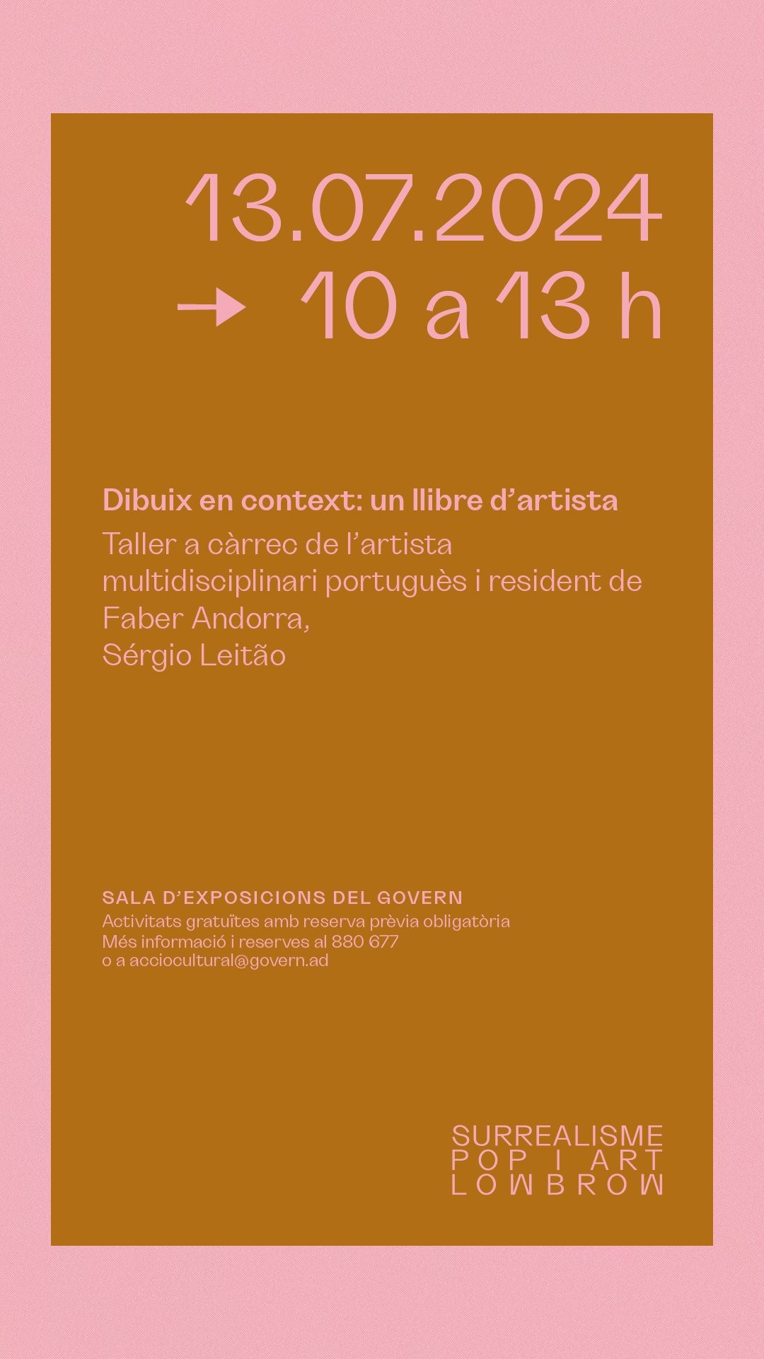 Taller a càrrec de l’artista multidisciplinari portuguès i resident de Faber Andorra, Sérgio Leitão. L’activitat començarà amb una pràctica de dibuix informal durant una breu passejada als voltants del Parc Central per, tot seguit, organitzar els diferents materials en un llibre d’artista treballat de forma col·lectiva.