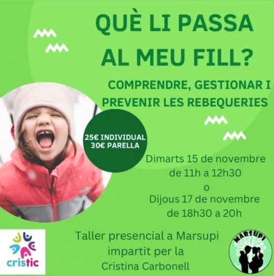 Taller 'Què li passa al meu fill? Comprendre, gestionar i prevenir les rebequeries'