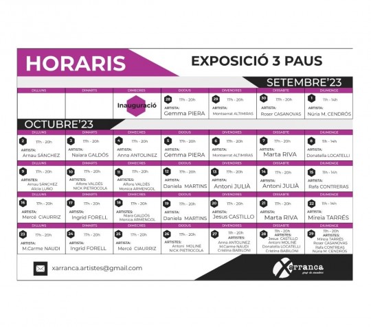 Tots els dies de 17 a 20 h · Diumenge, d'11 a 14 h