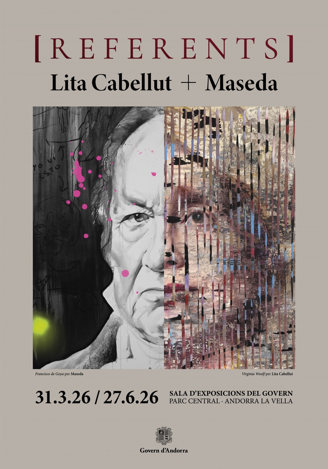 La Sala d’Exposicions del Govern presenta, en col·laboració amb la galeria ArtLab Andorra, la inauguració de ‘[Referents]. Lita Cabellut + Maseda’, una mostra comissariada per Eloy Martínez de la Pera, que proposa una trobada amb vint personatges fonamentals de la història contemporània a través del diàleg creatiu entre els dos artistes. L’exposició presenta el retrat com a espai de reflexió gràcies a figures contemporànies que han deixat una empremta significativa en la memòria col·lectiva, ja sigui en els àmbits cultural, social, polític o científic.