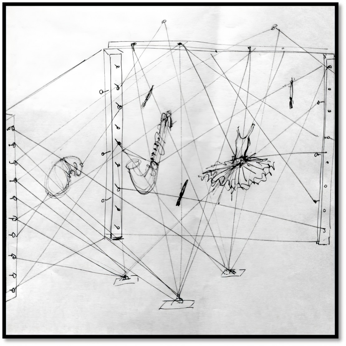 'Lligams' és una instal·lació artística, produïda per l'escola d'art d'Andorra la Vella, que vol esdevenir una metàfora dels vincles i complicitats que han tingut lloc al llarg d'aquests vint anys entre les diferents disciplines artístiques presents a La Llacuna: les arts plàstiques i visuals, la música, el teatre i la dansa.