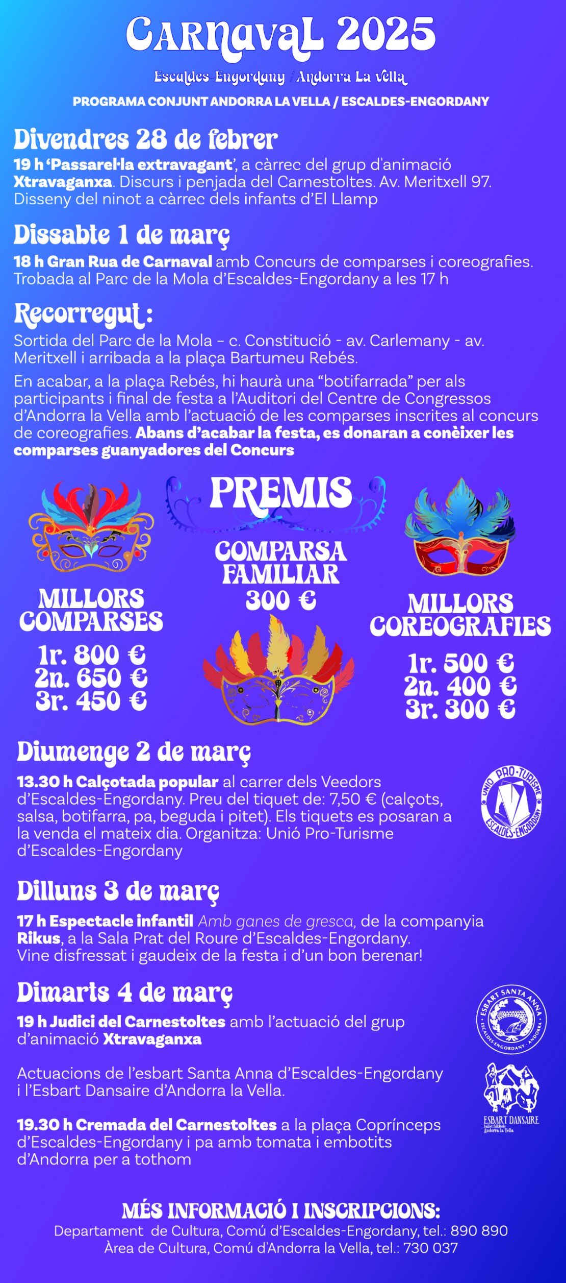 Àrea de Cultura, Comú d’Andorra la Vella, tel.: 730 037