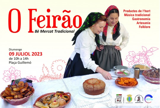 Els membres del Grup de Folklore Casa de Portugal recreen a la plaça Guillemó un mercat portuguès de la primera meitat del segle XX, format per cinc àrees temàtiques: artesania, productes de l’hort i animals vius, pastisseria variada, embotits i olis, una taberna amb tapes i vi típic portugueses. Durant la mostra els visitants podran adquirir i degustar els productes, i gaudir de moments de música popular portuguesa.