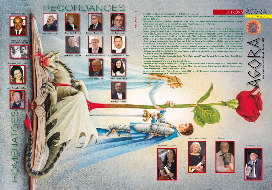 Activitat de reivindicació cultural amb la publicació dels premiats per Àgora Cultural l’octubre del 2022: Teresa Ventura, Carme Massana, Àlvar Valls i Albert Pujal; els homenatges a Xavier Plana, Manel Viusà i Gertrudis Galí, Montserrat Caballé i Josep Anton Rosell; les recordances de Jaume Caballé, Quima Calvó, Estanislau Sangrà, Josep Girbal, Antoni Albós, Carme Travesset (Mme. Aparicio), Josep Anton Marquilló, Pascual Iranzo, Simona Naudí i Jordi Aristot. La secció 'Joves Artistes' amb Ona Saumell, la secció 'Poemari' amb els poemes premiats al concurs Martí i Pol i el Dia de la Poesia a Encamp, el reportatge de la Diada de Sant Jordi; 'Enticultura' amb activitats de les entitats, 'Retalls', 'Papirus' amb les publicacions de l’any 2022, i l’'Odissea Cultural'.