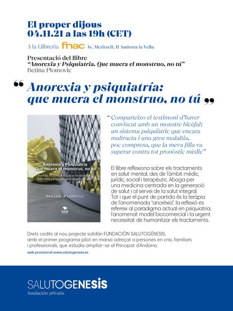 Presentació del llibre 'Anorexia y psiquiatría: que muera el monstruo, no tú'