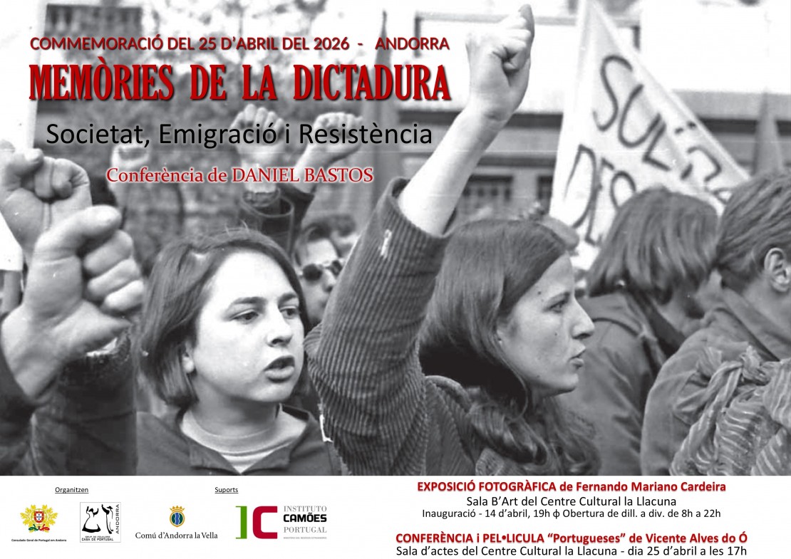- Conferència a càrrec de Daniel Bastos “Memòries de la Dictadura – Societat, Emigració i Resistència”, seguida de la projecció de la pel·lícula “Portugueses”, de Vicente Alves do Ó.