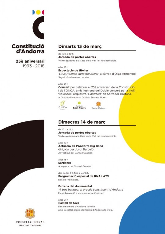 Per celebrar el 25è aniversari de l'aprovació de la Constitució, podeu visitar la Casa de la Vall en les dos jornades de portes obertes que s'han organitzat entre el Govern i el Consell General: