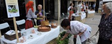Els membres del Grup de Folklore Casa de Portugal presenten un mercat tradicional ambientat amb cinc zones temàtiques destinades a l’artesania, productes de l’hort i del galliner, embotits i oli d’oliva, dolços, licors i pa de pagès i un espai destinat a la degustació de bacallà i vins.