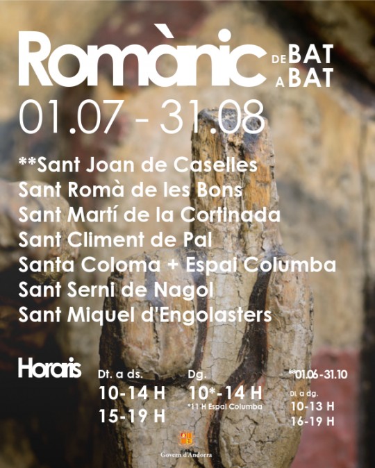 A més de disposar d’un ampli ventall d’esglésies romàniques visitables, l’estiu també és l’ocasió per visitar i redescobrir els museus gestionats pel Govern d’Andorra, i de l’1 de juliol al 31 d’agost Casa d’Areny-Plandolit, el Museu Postal d’Andorra, la Farga Rossell, Casa Rull, Casa de la Vall, el Museu Nacional de l’Automòbil i l’Espai Columba estaran oberts de dimarts a dissabte de les 10 a les 14 h i de les 15 a les 19 h, i els diumenges de les 10 a les 14 h, a excepció de l’Espai Columba, que els diumenges obre de les 11 a les 14 h.
