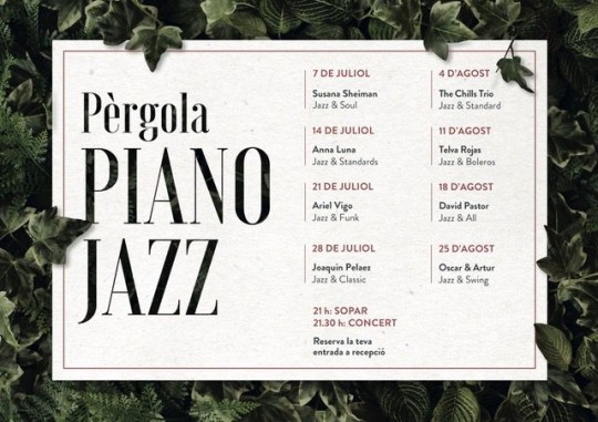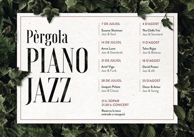 Els dijous, a partir de les 21.30h, els jardins d'Andorra Park Hotel s'ompliran de música per acompanyar la sobretaula del sopar a La Pèrgola. El jazz amb tota la seva riquesa i diferents estils serà el protagonista d'aquesta sèrie de concerts