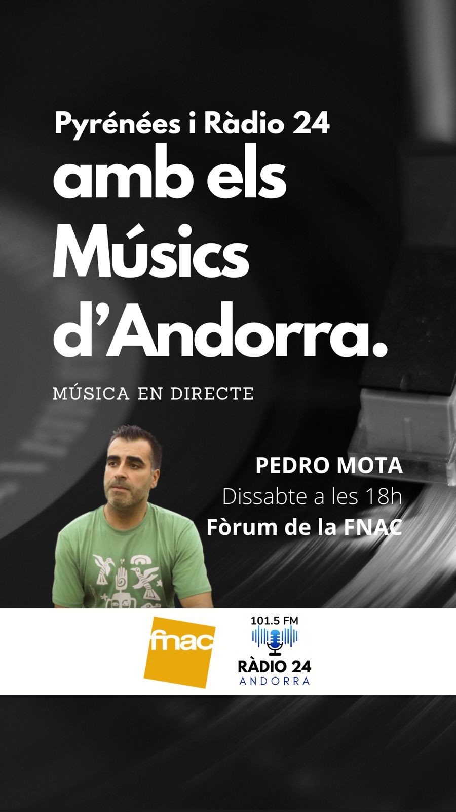 Aquest dissabte 28 de juny a les 18 h, el Fòrum FNAC Pyrénées Andorra acollirà una nova cita amb la música en directe. El protagonista d’aquesta edició serà el cantant Pedro Mota, una veu consolidada i molt estimada dins del panorama musical andorrà.