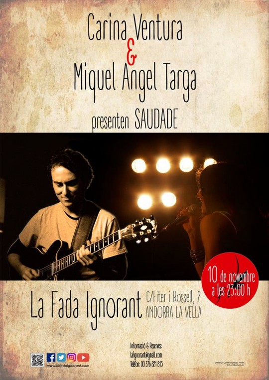 Concerts a La Fada Ignorant. Carina Ventura i Miguel Angel Targa presenten 'Saudade', un repertori de bossa nova i jazz.