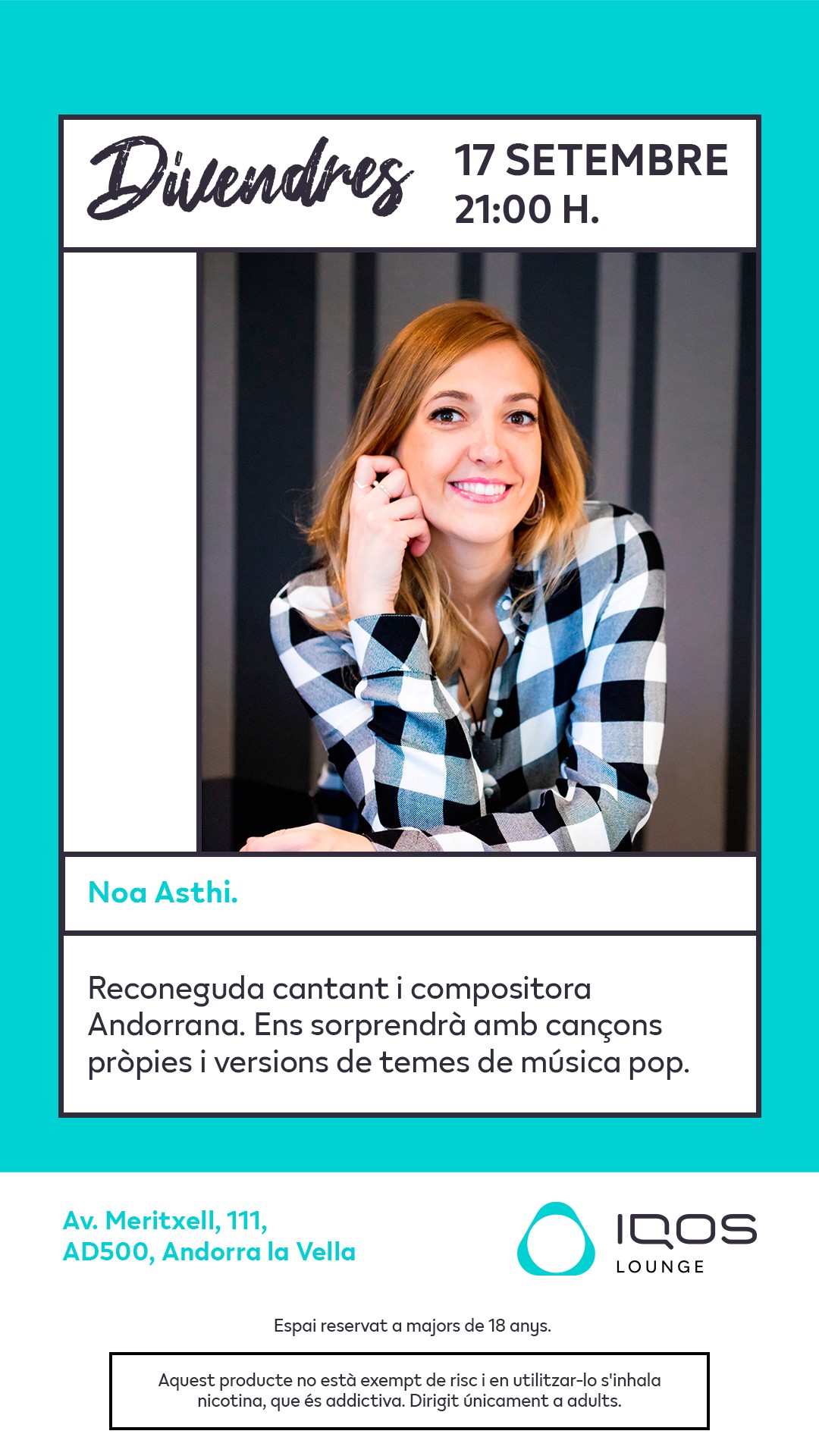 Cantant i compositora andorrana reconeguda. La veu és el seu instrument i la música li dóna l'oportunitat de transmetre al públic el que sent. Ens sorprendrà amb cançons pròpies i versions de temes de música pop.