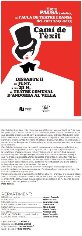 A càrrec del grup PAUSA (adults) de l'Aula de Teatre del Comú d'Andorra la Vella.