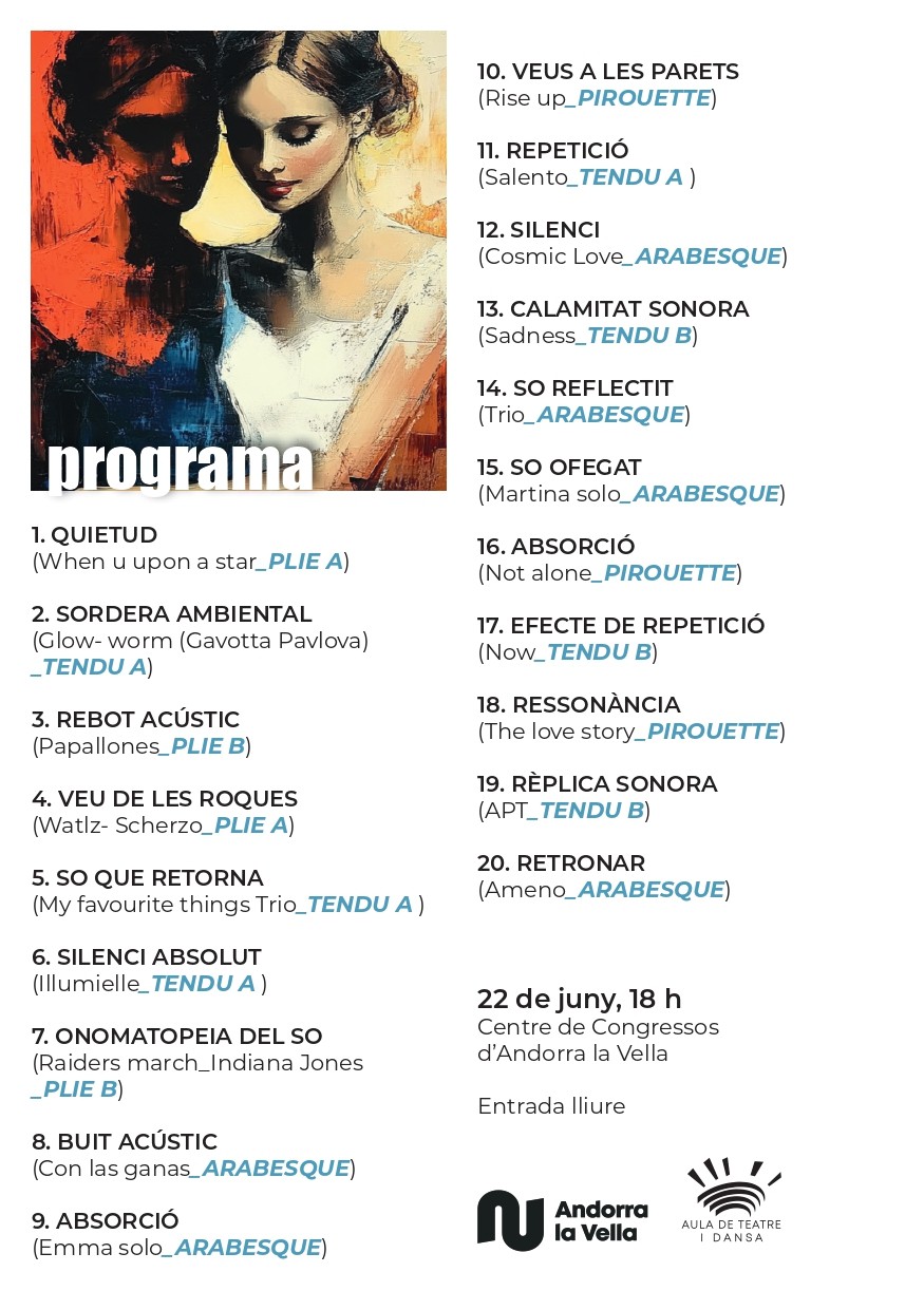 · L’eco com a memòria: Algunes coreografies recuperaran gestes del passat, mostrant com la dansa guarda empremtes del que s’ha viscut, com un xiuxiueig que persisteix.