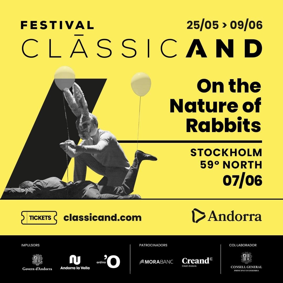 En la segona edició del CLASSICAND, la dansa està representada per la prestigiosa companyia sueca Stockholm 59° North. Formada per ballarins del Royal Swedish Ballet, realitzen dansa de primera classe d’una manera emotiva. A Andorra ens presentaran, en primícia, “On the Nature of Rabbits”, una creació feta per la Biennal de Venècia del 2023, amb coreografia de Pontus Lidberg.