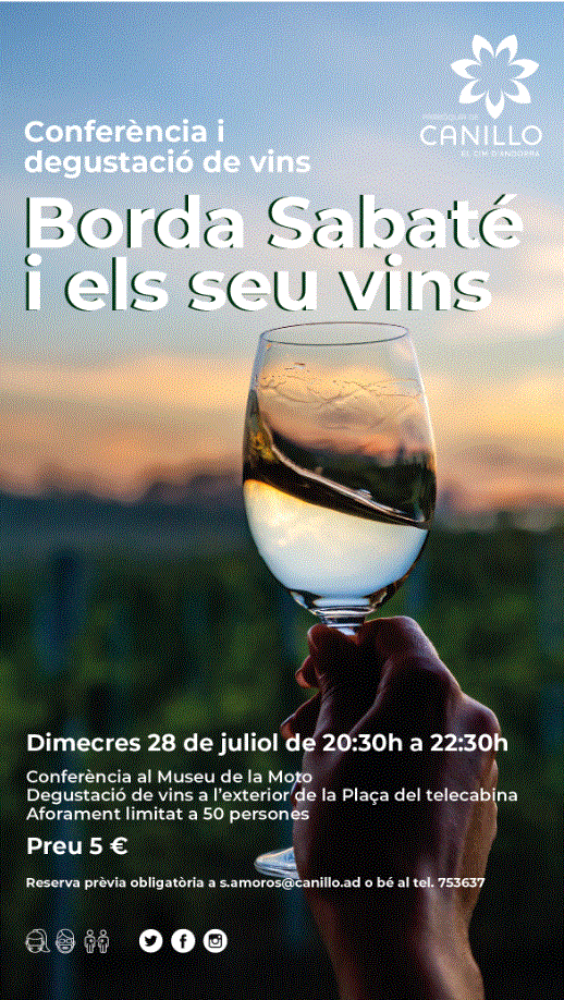 Conferència i degustació de vins de Borda Sabaté el proper dimecres 28 de juliol de 20.30h a 22.30h al nou Museu de la Moto de Canillo. (Planta 2 de l'edifici Telecabina)