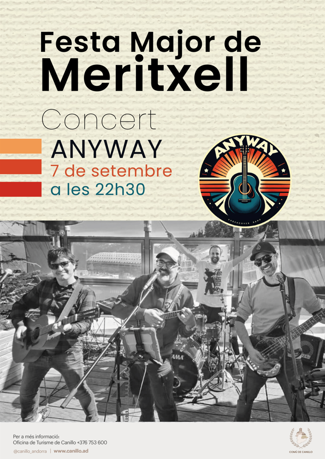 ANYWAY és una banda d’undercovers formada per músics d’Andorra amb una llarga trajectòria al Principat en grups com Hound Dogs, Weeshirt, Mordigans, Gwärroteville o Black Thursday i aposten per unes Versions acústiques amb bateria i moltes harmonies vocals. El repertori molt variat i per a tots els públics, inclou peces de Foo Fighters, U2, Mumford & Sons, Sting, Bob Marley, Oasis, Keane, o The Beatles, entre molts altres, fent vibrar el públic amb èxits dels últims 50 anys.