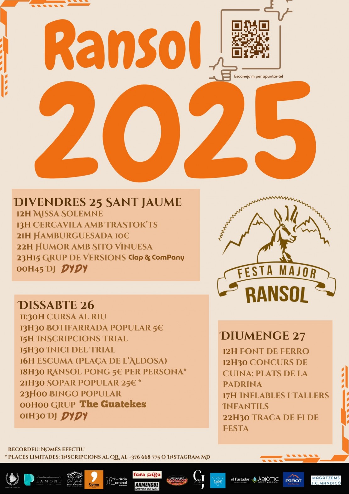 Us convidem a gaudir de la Festa Major de Ransol els dies 25, 26 i 27 de juliol de 2025.
