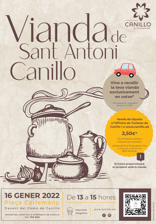 El Comú de Canillo acollirà una nova edició de la Vianda de Sant Antoni el pròxim 16 de gener de les 13h a les 15h.