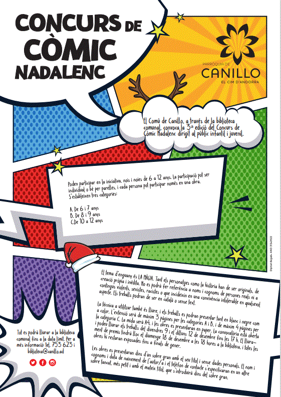 El Comú de Canillo, a través de la Biblioteca Comunal, convoca la 3a edició del Concurs de Còmic Nadalenc dirigit al públic infantil i juvenil.