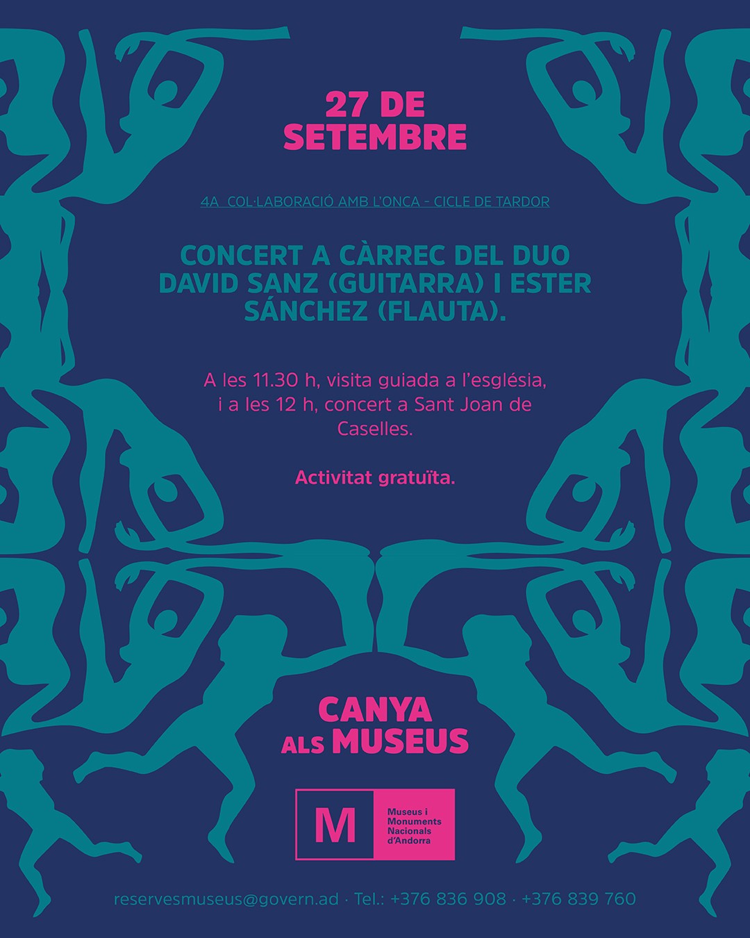 Concert a càrrec del duo David Sanz (guitarra) i Ester Sánchez (flauta). A les 11.30 h visita guiada a l’església i a les 12 h concert a Sant Joan de Caselles.