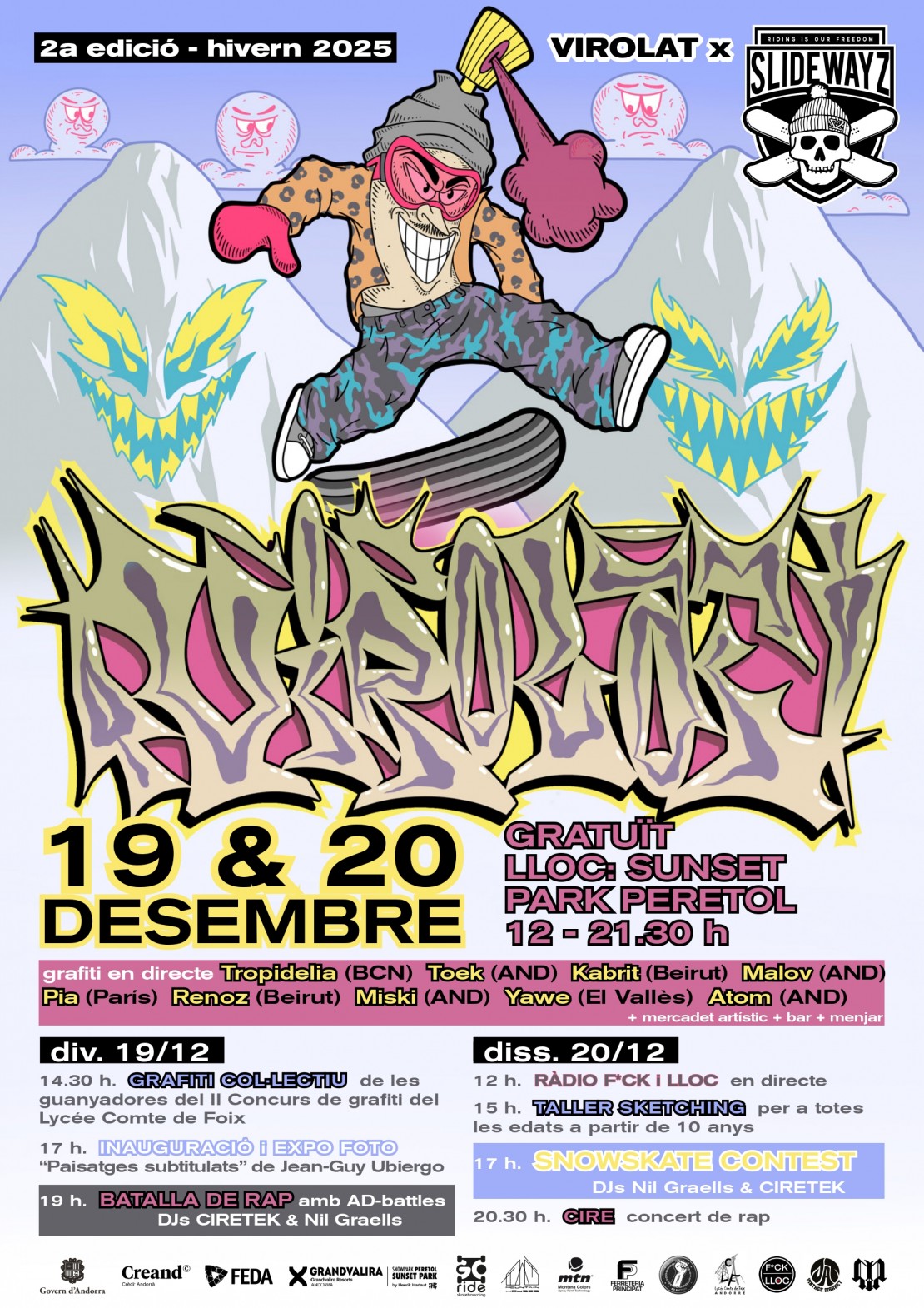 Aquesta edició hivernal 2025 del festival VIROLAT, festival de grafiti i cultura urbana entre muntanyes, a Andorra, us prepara moltes sorpreses!