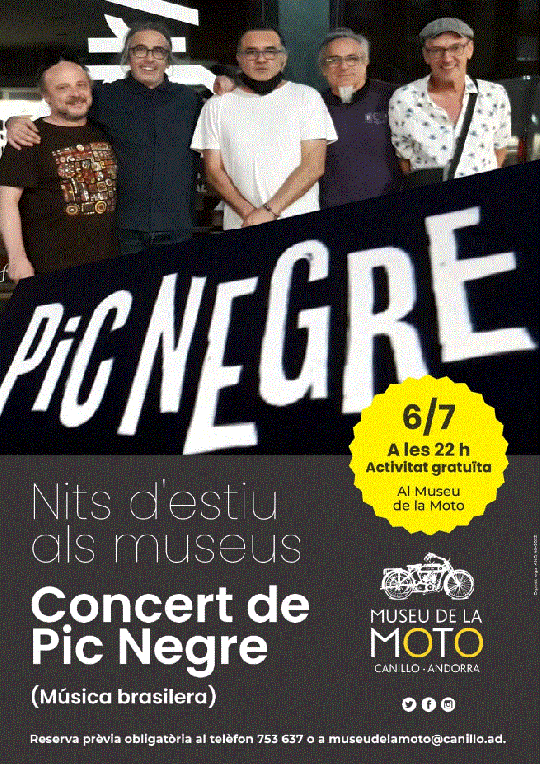 Els músics del grup andorrà Pic Negre ens acostaran al Brasil a ritme de samba, xoro, bossa nova i partido alto, inspirant-se en Djavan, Jobim i Gabriel Grossi, cèlebres músics brasilers reconeguts internacionalment.