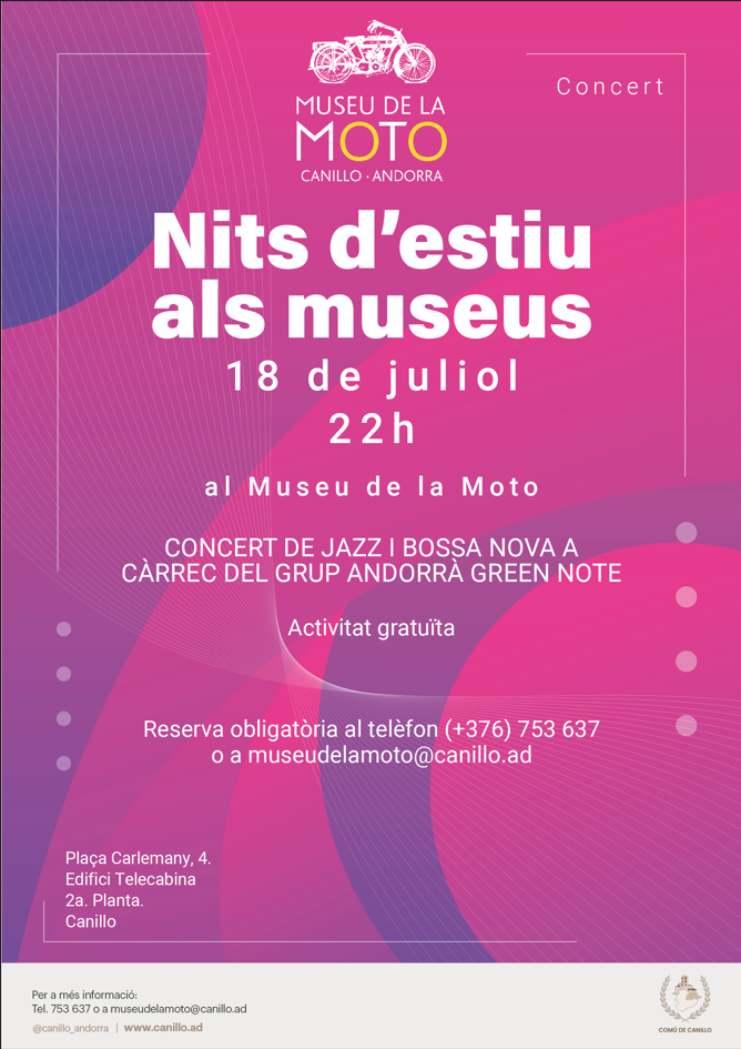 Nits d'estiu als Museus: Concert de jazz i bossa nova a càrrec del grup andorrà Green Note.