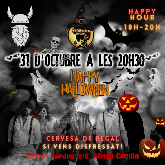 Gaudeix d’una nit terrorífica, amb Happy Hour i la millor cervesa artesanal de 18 h a 20 h, un sopar de mort i música en viu!