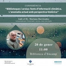 Conferència “Biblioteques i arxius: fonts d’informació climàtica. L’anomalia actual amb perspectiva històrica”, amb el Dr. Mariano Barriendos