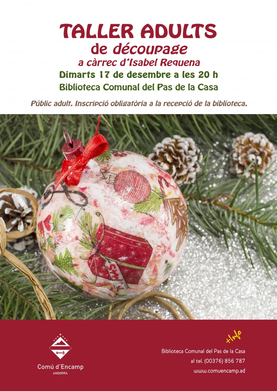 La Biblioteca Comunal del Pas de la Casa organitza el taller "Découpage" per a adults, que anirà a càrrec d'Isabel Requena.