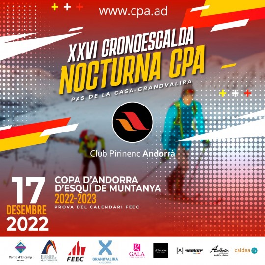 El Club Pirinenc Andorrà organitza la XXVI Cronoescalada Nocturna CPA Pas de la Casa. Serà la primera prova de la temporada de competició d’esquí de muntanya al Principat d’Andorra, puntuarà per la MoraBanc Copa d’Andorra d’Esquí de Muntanya i per la Copa de Cronoescalades de la FEEC.