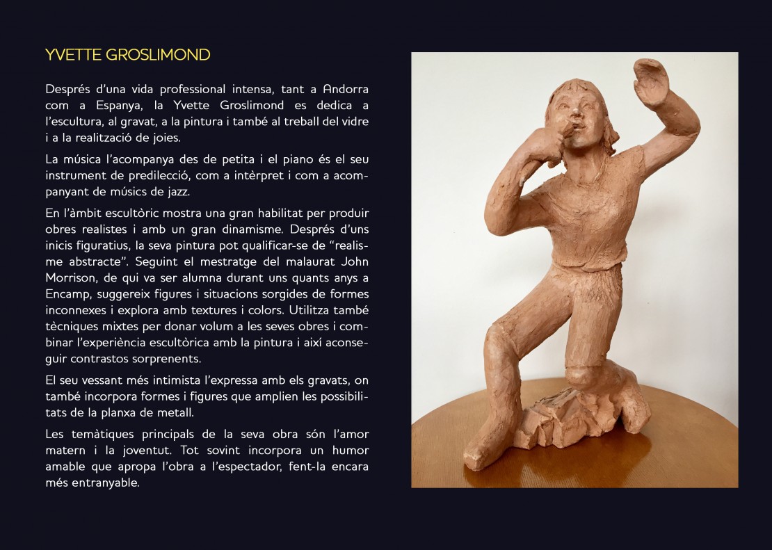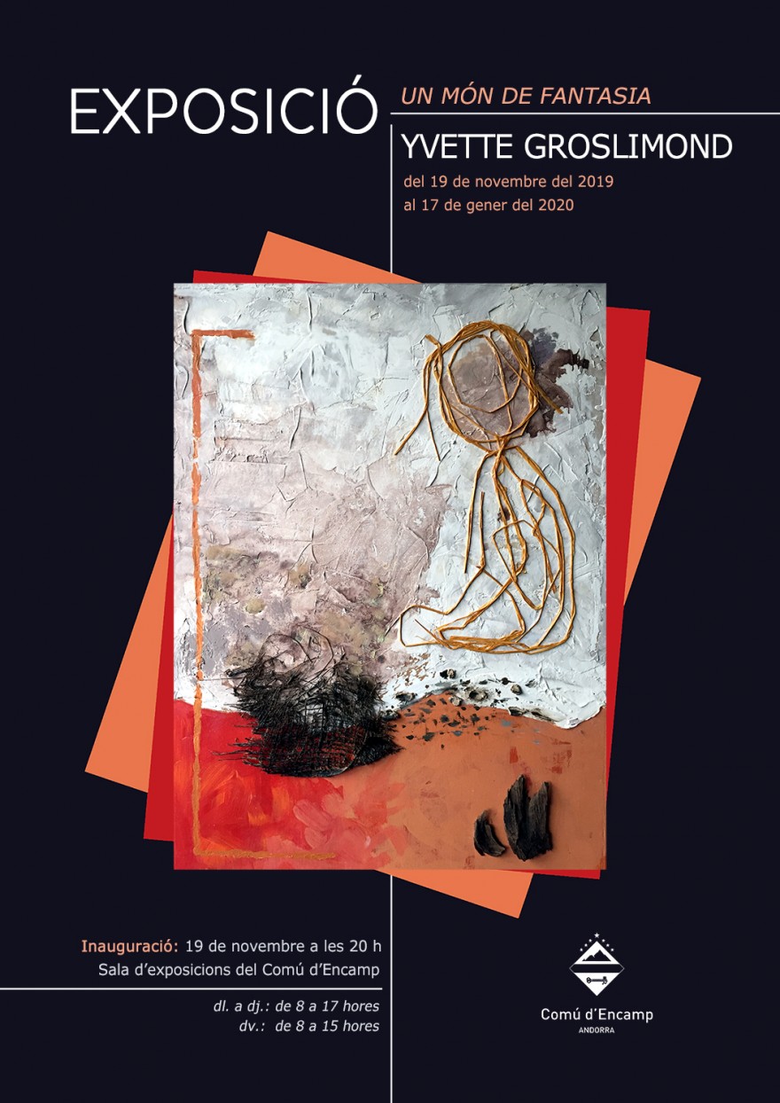 La sala d'exposicions del Comú d'Encamp acollirà l'exposició 'Un món de fantasia', de l'artista YvetteGroslimond, una mostra on trobarem escultura i pintura en un recorregut per un món de fantasia on la Yvette expressa, a través de diferents tècniques i formats, allò que la seva personalitat inquieta li demanava de fer en cada moment.