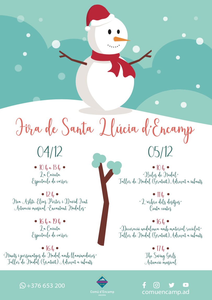 El cap de setmana del 4 i 5 de desembre se celebrarà la Fira de Santa Llúcia a la plaça Sant Miquel d’Encamp.