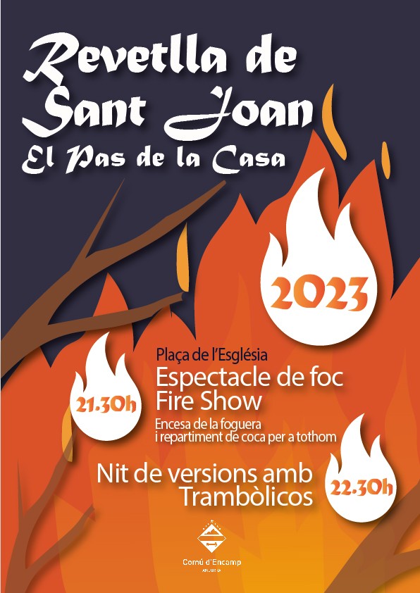 La Revetlla de Sant Joan del Pas de la Casa es farà a la plaça de l'Església i començarà a les 21:30 amb l'espectacle de foc 'Fire Show'. Posteriorment, hi haurà l'encesa de la foguera i repartiment de coca per a tothom. La nit continuarà amb l'actuació el grup de versions 'Trambòlicos'. No us ho perdeu!