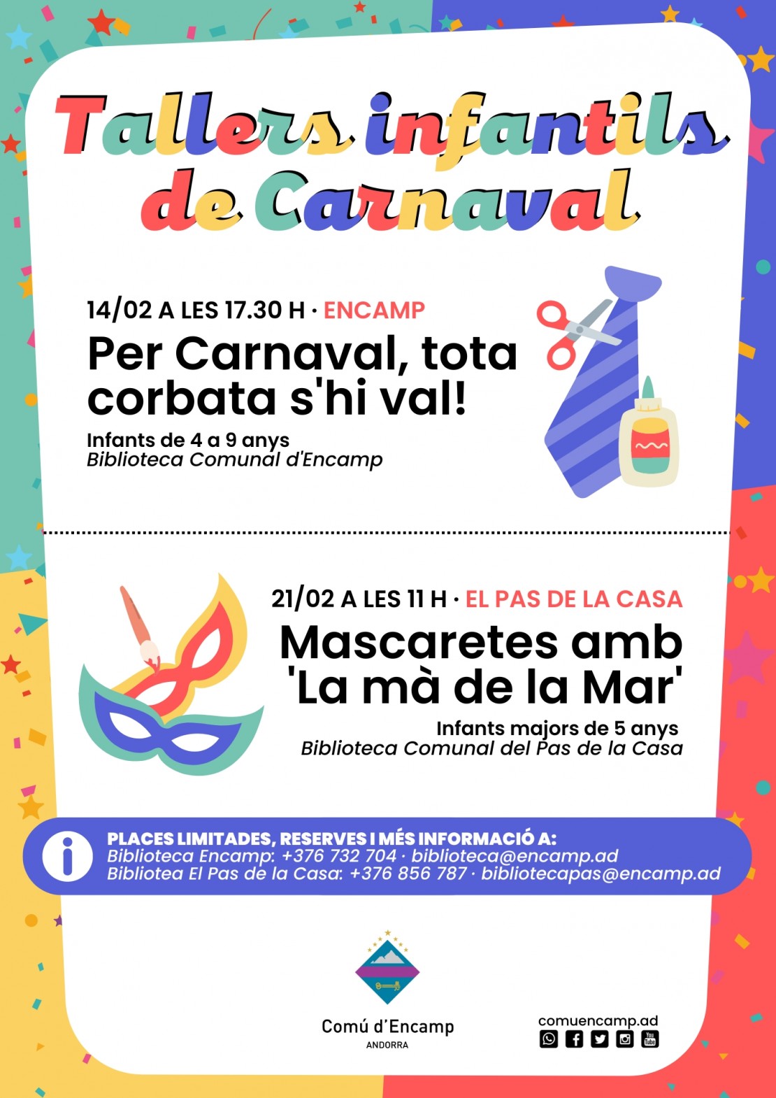 El Carnaval és una festa coneguda mundialment, un mitjà d'expressió que molts nens i nenes valoren i gaudeixen. Amb el taller 'Per Carnaval, tota corbata s'hi val!', que ofereix la Biblioteca comunal d'Encamp, els menuts descobriran com gaudir de la festivitat, i alhora, treballaran valors positius com la importància de conèixer i preservar les tradicions. A més, durant el taller s'elaborarà una corbata acolorida a partir de coneguts personatges del món del cinema.