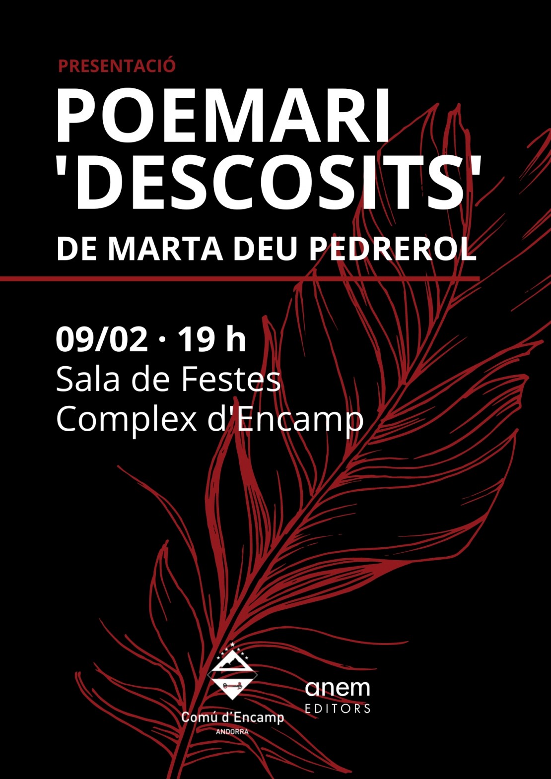 La presentació comptarà amb la intervenció de la Cònsol Major d’Encamp, Laura Mas, i de l’editor Josep Dallerès, que conservarà amb l’autora. Marta Deu clourà l’acte amb la recitació d’alguns dels seus poemes.