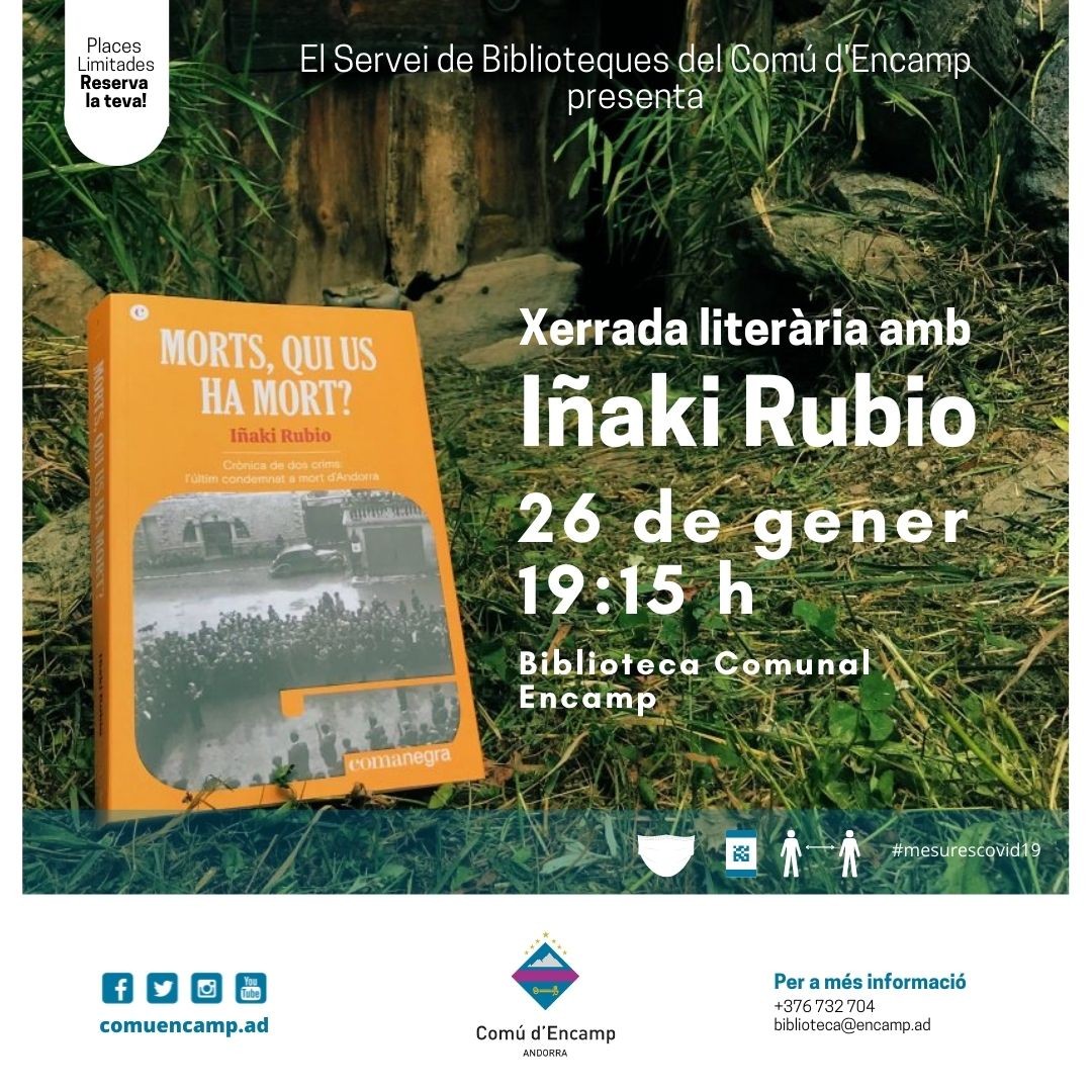 La Biblioteca Comunal d'Encamp acull una xerrada literària amb l'escriptor Iñaki Rubio, autor de 'Morts, qui us ha mort?'.