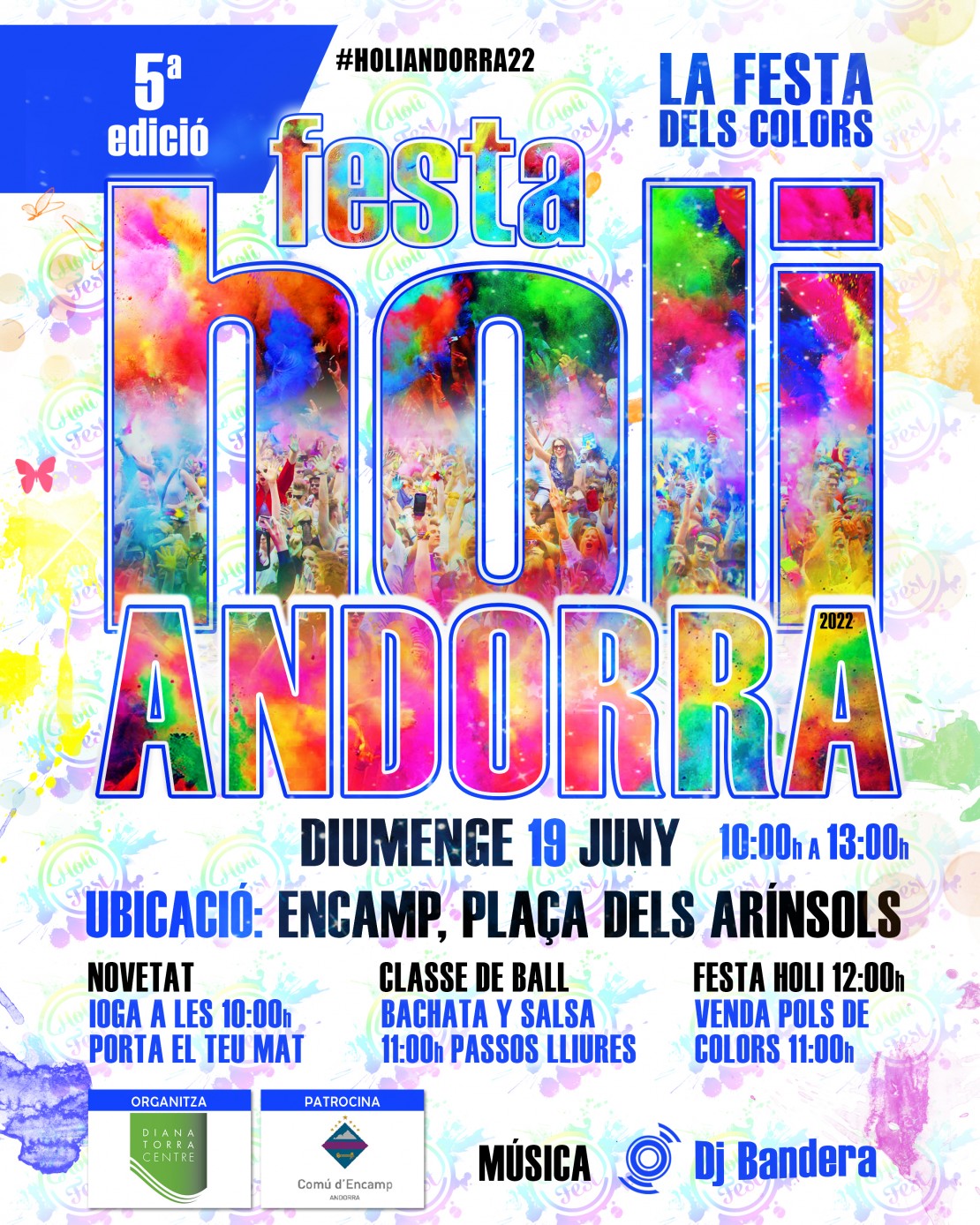 El matí començarà amb una sessió de ioga a les 10 h (cal portar el mat). A les 11 h hi haurà una classe de ball de bachata i salsa. I a les 12 h es farà la festa holi (la venda dels pols de colors serà a les 11 h). A més, hi haurà amenització musical amb el DJ Bandera.