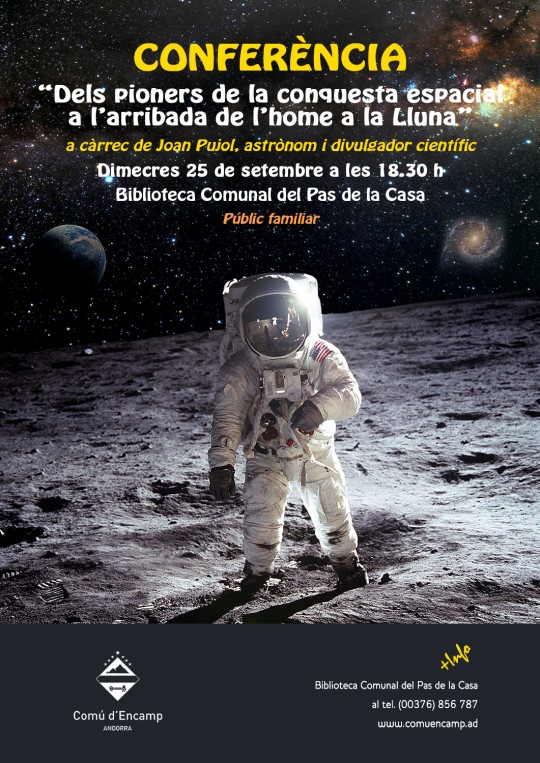 La Biblioteca Comunal del Pas de la Casa organitza la conferència 'Dels pioners de la conquesta espacial a l'arribada de l'home a la Lluna', que anirà a càrrec de Joan Pujol, astrònom i divulgador científic.