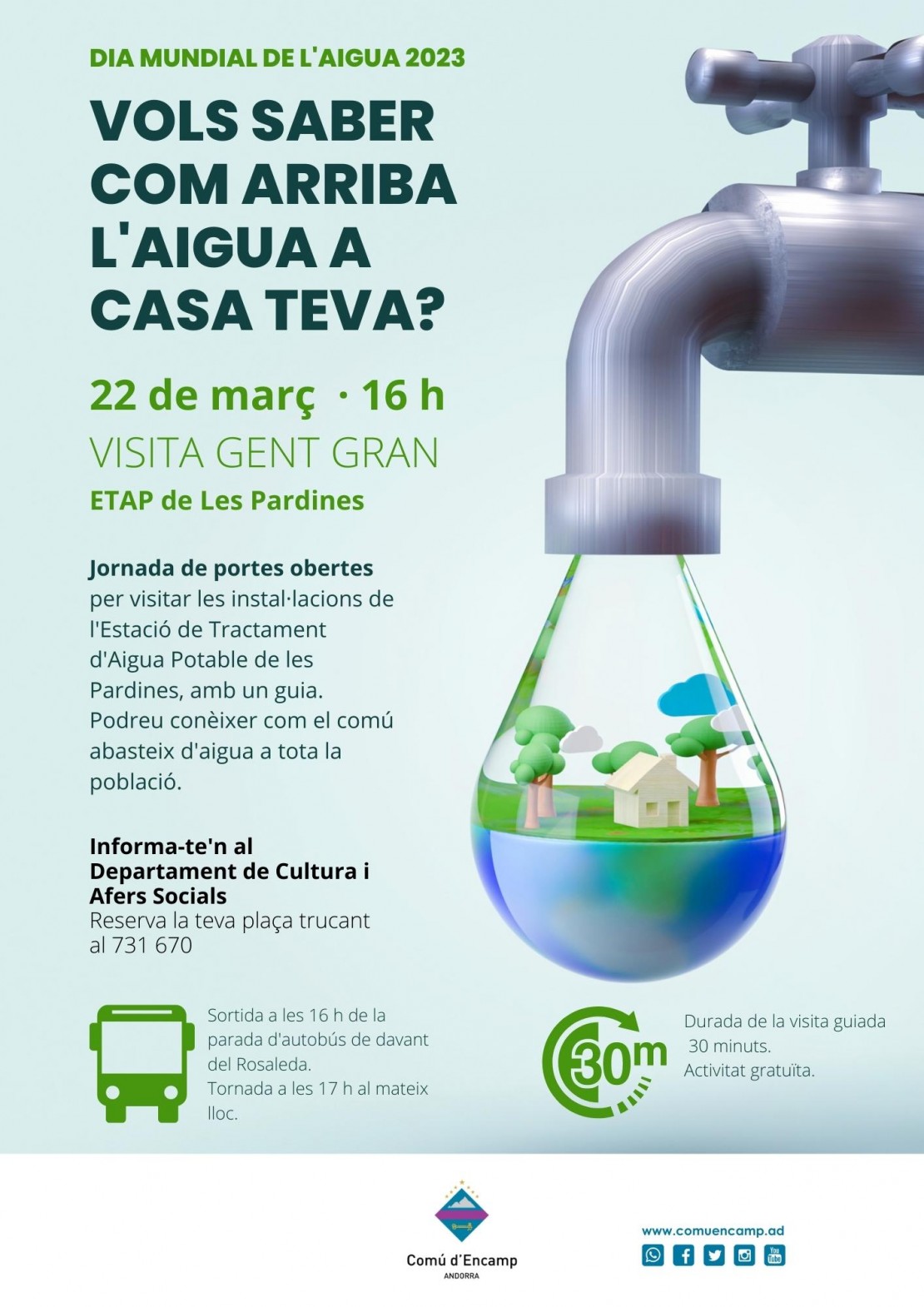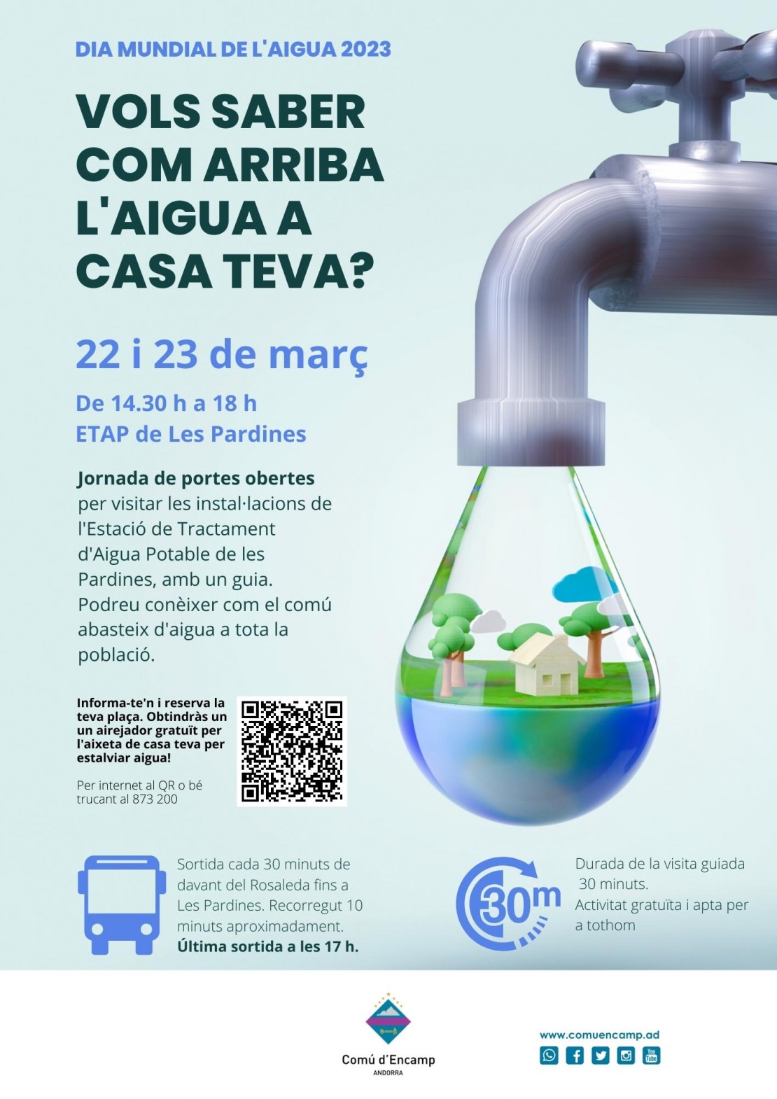 Encamp commemorarà el Dia mundial de l’aigua amb una jornada de portes obertes a l’Estació de Tractament d’Aigua Potable (ETAP) de les Pardines. L’activitat es farà el 22 i 23 de març i comptarà amb visites guiades gratuïtes.